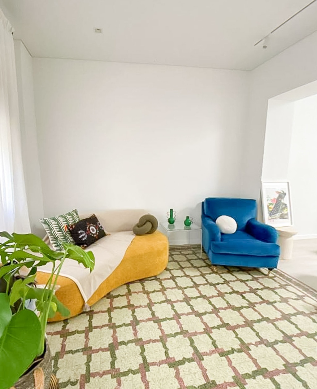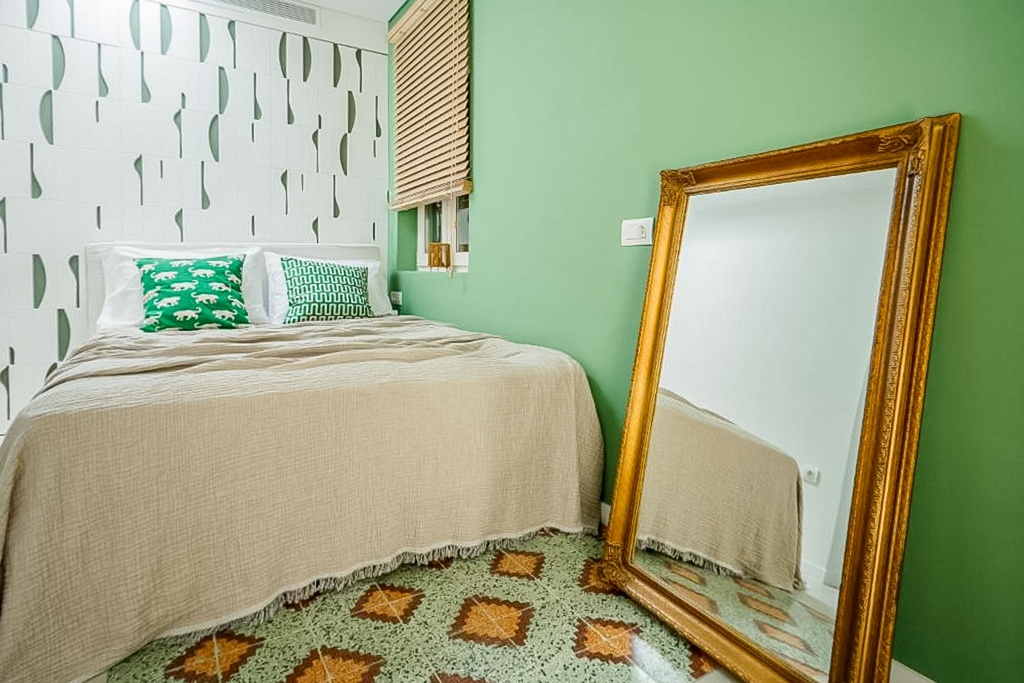 Decorated with vintage furniture and decor, the apartment offers a glamorous feel while having modern elements.