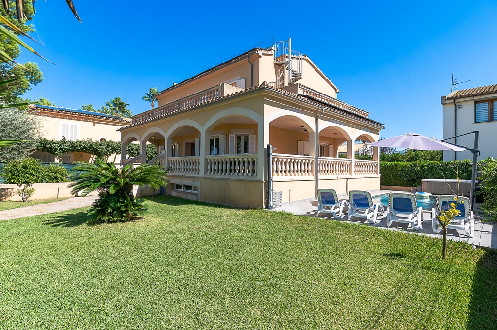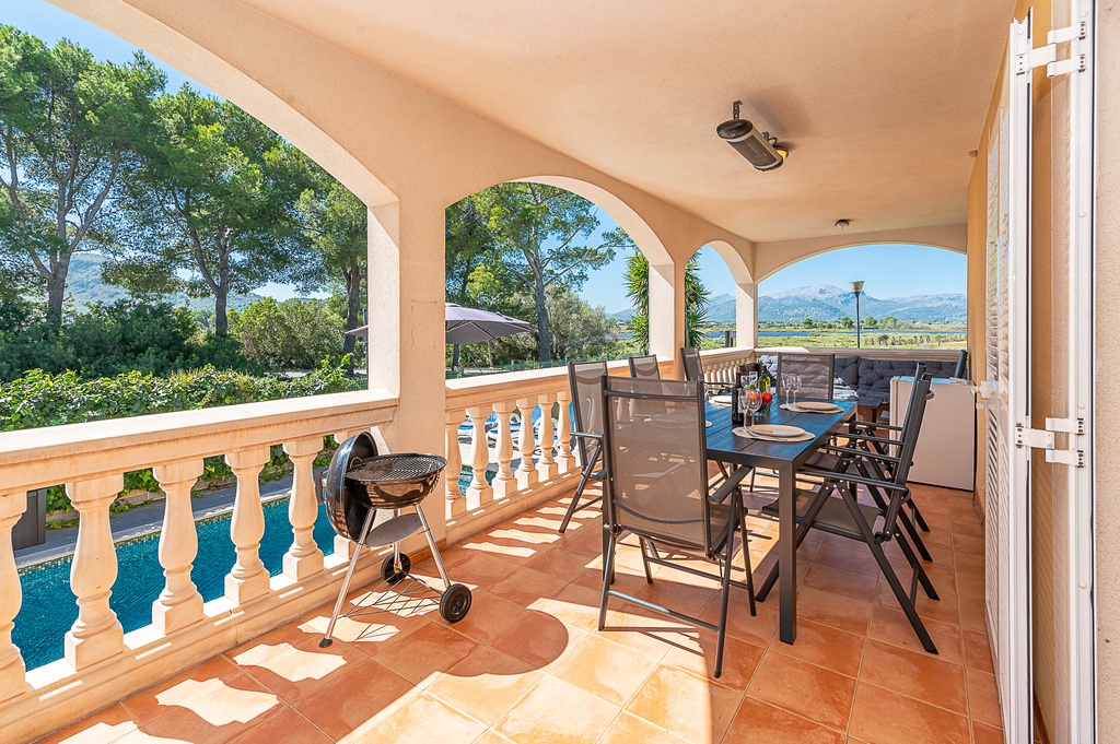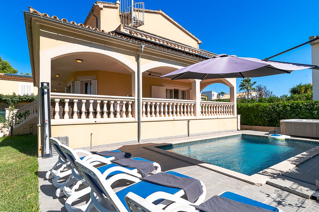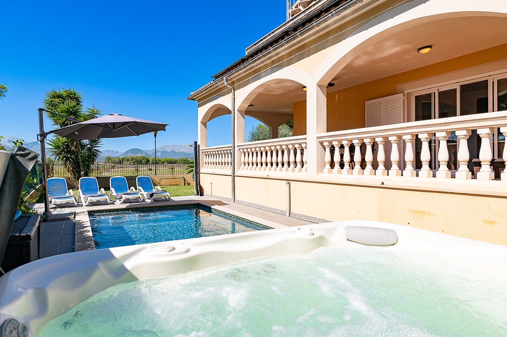 Located in a quiet and picturesque setting in Alcudia, this villa offers the perfect refuge to enjoy unforgettable holidays with family or friends. Just a few kilometres from the beautiful beaches of Puerto de Pollensa and the charming town of Pollensa, the villa becomes the ideal place to relax. The property features spacious covered terraces to enjoy outdoor meals or a good book, while in the garden there is a refreshing private pool, perfect for sunny days. Additionally, the jacuzzi offers a moment of relaxation under the Mallorcan sky, available during the months of March, April, May and October, with an additional heating cost. Inside, the villa has a bright living-dining room with direct access to the terrace and pool, a fully equipped kitchen and several bedrooms, all with private balcony and clear views. The upper floor offers a spacious terrace with spectacular views of the Albufera de Alcudia, perfect for enjoying sunrises and sunsets. With all necessary amenities, the villa combines privacy, comfort and an unbeatable location to enjoy a unique holiday experience.