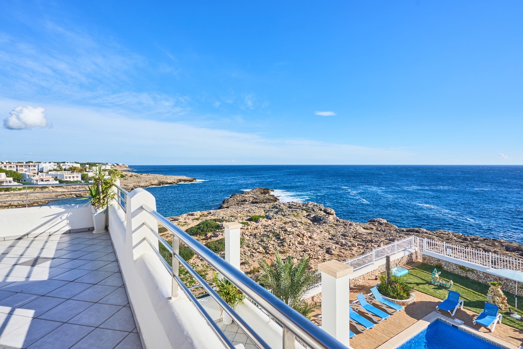 Semi-detached sea front villa for 10 people to rent, with superb open sea views located in Es Fortí area, a short distance from Cala Egos, Cala D'Or, Mallorca. Conveniently located a short walk to Caló des Pou and Cala Egos sandy cove as well as Cala Egos centre. Gate from the pool area leading to the rocks and sea.