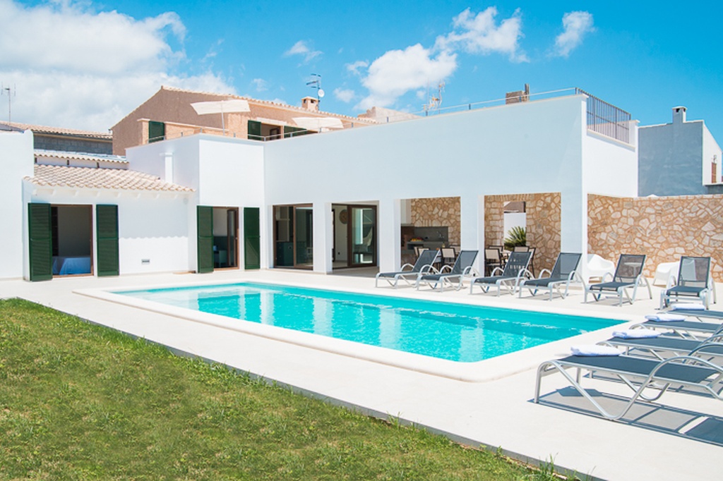 APPROXIMATE DISTANCES BY CAR: S’Horta is a typical inland village of just 1,000 or so inhabitants. It offers a few cafeterias, two small supermarkets, a café-bar, a bank and a church. A short 5 minute drive towards Cala Ferrera is the beautiful sandy beach Cala Sanau. The larger resort of Cala D’Or with several sandy beaches, a pedestrian centre with a wide variety of shops and restaurants and its impressive harbour is only 5km away. Porto Colom is a beautiful fishing town about 6km and offers sea front restaurants and more sandy beaches. Golfers will love the ‘Vall D’Or Golf’ that’s just a 10 minute drive from the villa.
