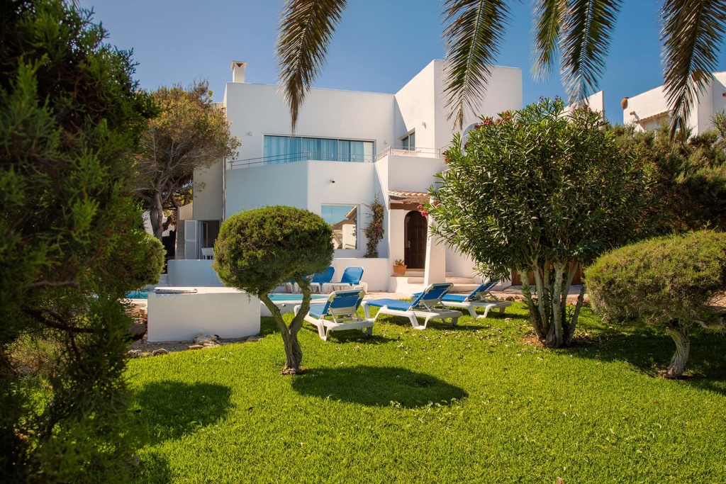 Villa Mar Gran is designed in "Old Ibizan" style and has just undergone a complete rebuild and refurbishment. A short path leads up from its gated entrance a lawned garden to the front door. From the entrace we access directly into a spacious, airy, comfortable furnished lounge/dining room with original fireplace. Patio doors open out on to the pool area, whilst at the rear, doors lead to a more private patio area. Renovated kitchen well equiped kitchen and there is a washing machine in the garage for your added convenience.