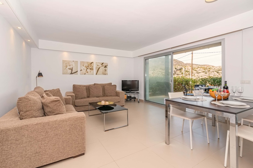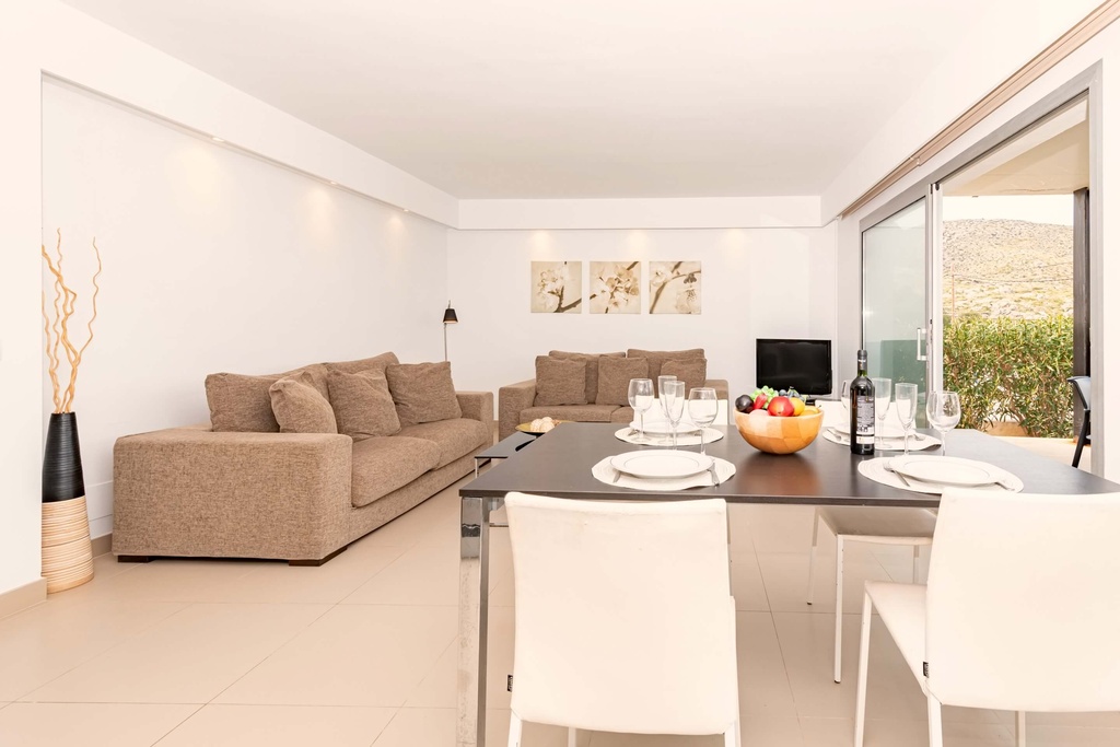Enjoy the charm of Cala Sant Vicenç in this elegant and modern apartment located on the beachfront. The building itself has been recently built and has the sand of Cala Clara 50 meters away. A small, intimate beach with crystal clear water, for those who do not know the most famous corner of Cala Sant Vicenç. The apartment is on the ground floor of the building and has a private terrace and garden with sea views. In addition, its guests can benefit from a glamorous infinity pool with designer hammocks, located at the back of the building. The swimming pool is shared with the other apartments. Inside the apartment we will find two bedrooms, both with single beds, one of which has an en-suite bathroom. The living room and kitchen share a large open area filled with natural light and delighted with spectacular views. The house has a second individual bathroom with shower. We will find AC both in the rooms and in the living room. For the comfort of our guests, air conditioning is available and included in the price between 14:00-16:00 and 20:00-8:00.