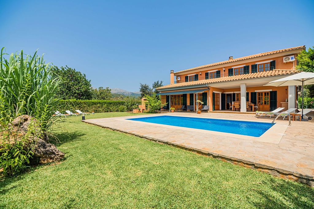 In the exterior, the villa enjoys one of the most peaceful and private environments in the north of Mallorca. Spacious and well-maintained gardens surround the property and the private pool to provide excellent isolation. The pool measures an impressive size of 7.9 m x 4.5 m (depth between 1 m and 1.9 m) and is equipped with comfortable sun loungers. The spacious furnished terraces offer many options for outdoor dining, enjoying the local breeze and the beautiful atmosphere. A brick barbecue is also provided and there is private parking on the premises.