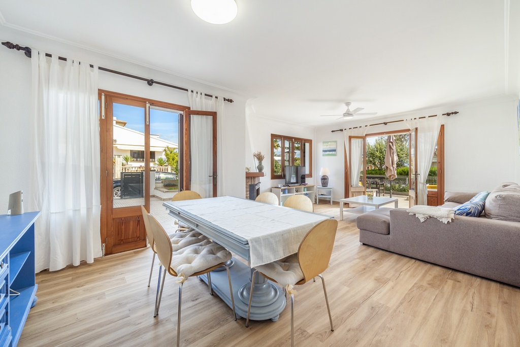 Can Picafort is located in a coastal area, mostly tourist in the summer months, where you will have all the services you need. Its beach, a few minutes walk away, is a beach of fine white sand, its crystalline waters invite you to take a relaxing bath or to practice water sports given its extension. We recommend a visit to the Albufera Natural Park, a walk or bike ride through the natural park of the Finca de Son Real. A short distance from the villa you can enjoy a pleasant walk after tasting a delicious and traditional paella in a restaurant on one of its beaches, such as the beach of Ses Casetes des Capellans. If you want to get to know an even more lively area, go to Puerto de Alcúdia, and to Alcanada if you want to play golf.