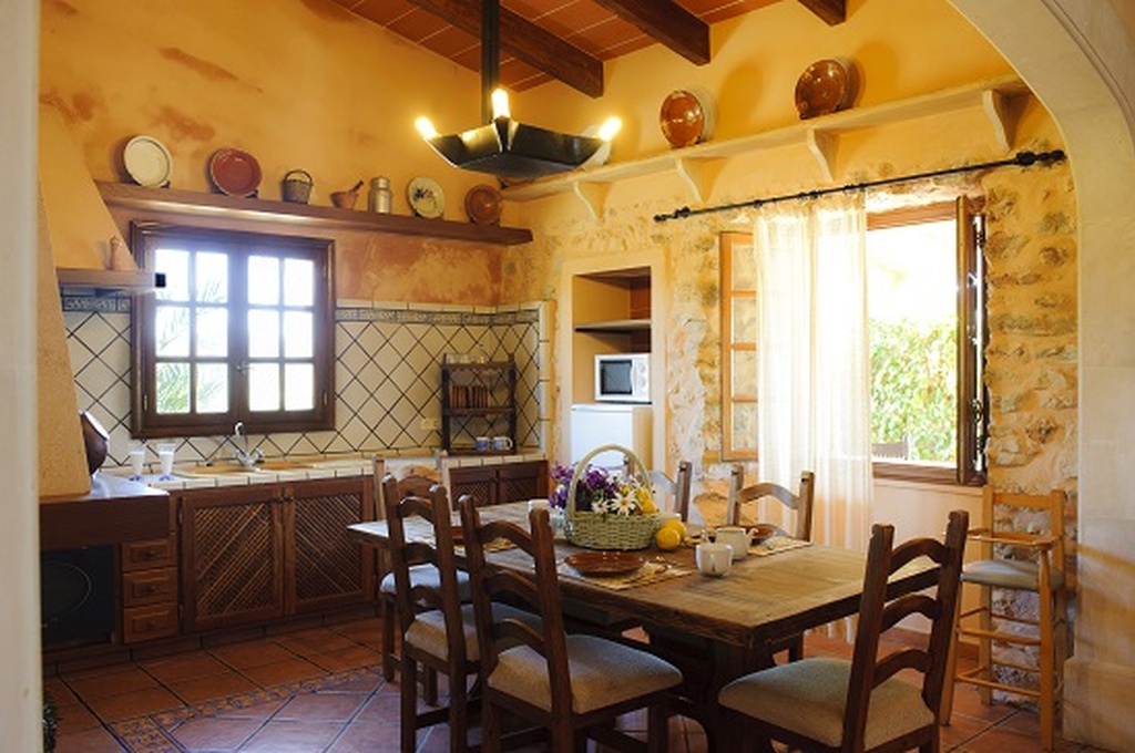 Can Alou has been painstakenly restored stone by stone over the past four years by the owner. The accommodation offers all that you would expect when your holiday is designed for outdoor living. Upon entering is the attractive living/dining room with Satellite TV, DVD player and comfortable sofas. This room further extends into the open plan farmhouse style kitchen with electric oven/gas hob, fridge/freezer, microwave, feature fireplace and washing machine. Two bedrooms, one double and one twin share one full bath/shower room. Throughout, this cottage is comfortably furnished in local style with impressive interior stone walls, helping create a very natural and restful ambience. Free standing cooling fans in bedrooms.