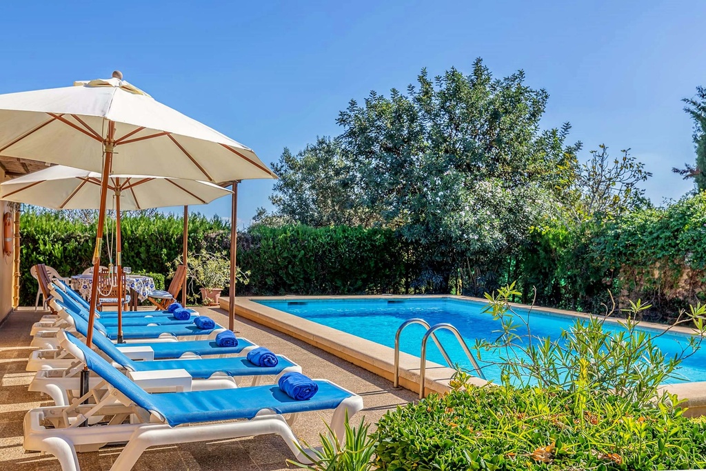 Almadrava benefits from a large shady terrace located at front of the property, complete with dining furniture, while further covered terraces are available to the side and rear, all providing shady retreats from the Mallorcan sun. Enclosed by hedgerows, the gardens provide a secluded area for relaxing days by the pool. Inside, the villa is traditionally furnished in pine with beamed ceilings and tiled floors and benefits from air-conditioning to provide cool air in the sultry, Mediterranean evenings. A fully fitted kitchen includes the modern conveniences required for self-catering and the built-in barbecue is great for alfresco dining.