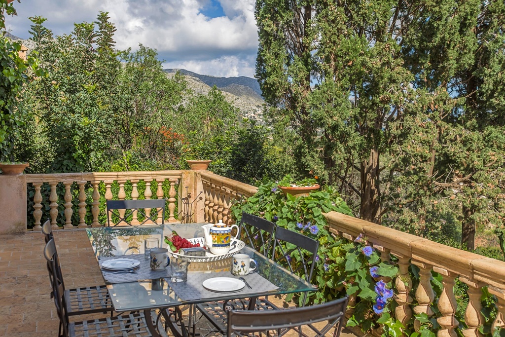 The inviting swimming pool, surrounded by stone-paved terraces, offers breathtaking views over the old town of Pollensa below and is equipped with sunbeds, shades, barbecue and table for al-fresco dining while admiring the views.