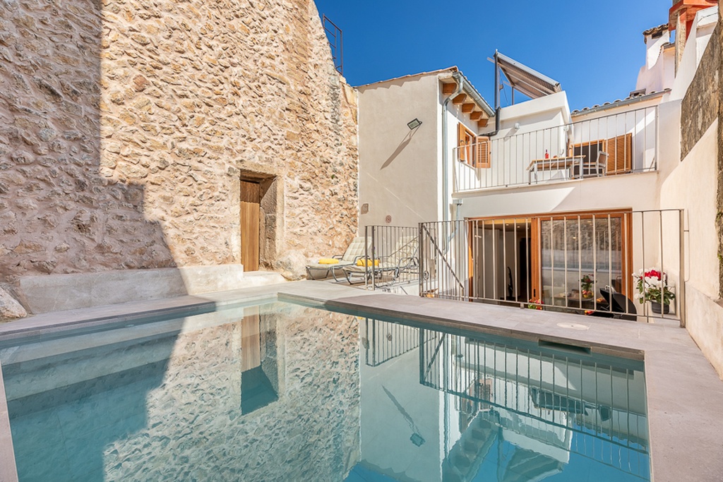 Outside, one of the most unique features of Casa Huerta 125 is the beautiful private patio with pool. Equipped with a dining table and gas barbecue, it is the perfect place to enjoy Mallorca's mild climate throughout the summer while enjoying a delicious dinner outdoors.