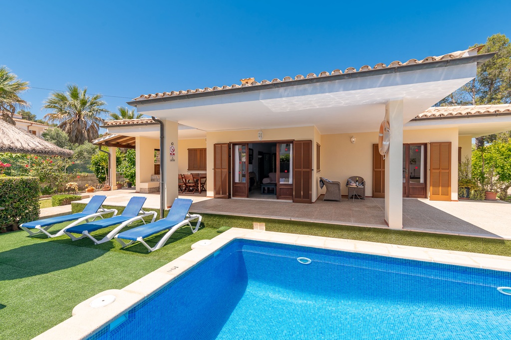 This pleasant 3 bedroom villa has a private swimming pool and brick BBQ, as well as a view of the Tramuntana Mountain in the distance. WiFi and air conditioning/heating in all of the bedrooms are included.