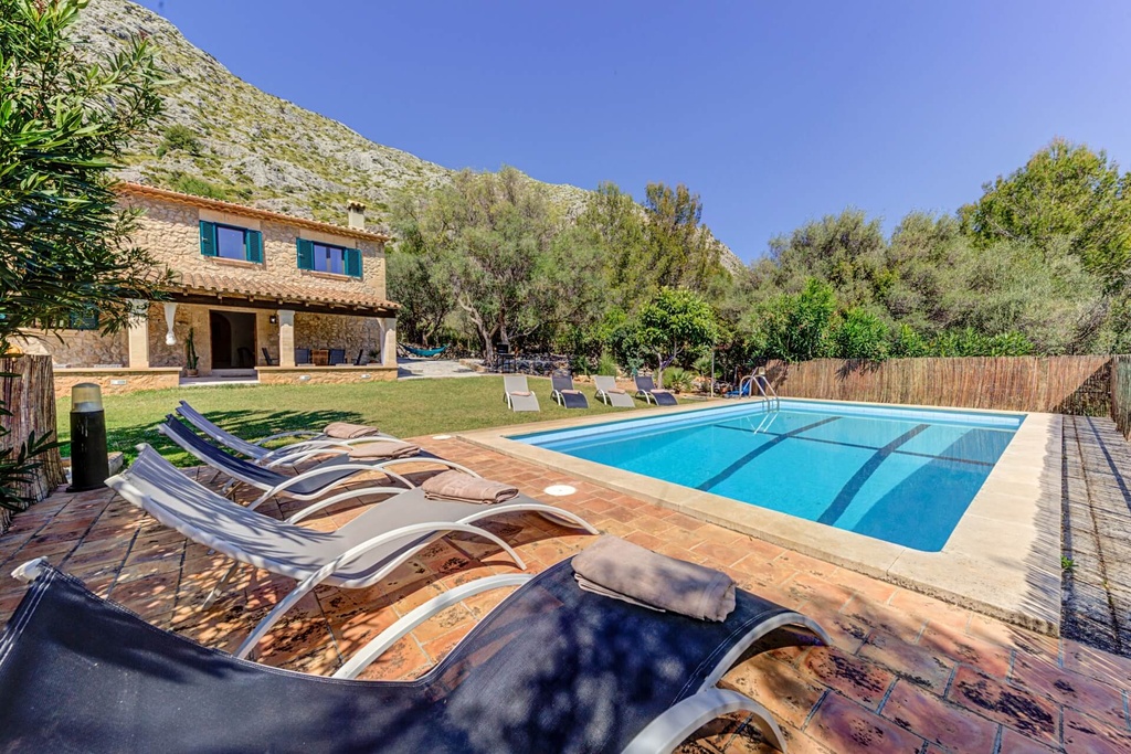 La Plana is a spacious and welcoming villa with private pool, 4 bedrooms and extensive gardens, beautifully located close to the old town Pollensa and just a short drive away from the amazing sandy beaches of Puerto Pollensa and Casa San Vicente. Providing welcoming, air-conditioned interiors, excellent privacy, well kept gardens and beautiful views over the Tramuntana mountains, this stone-built villa is the perfect holiday home for a large family or a group of friends wanting to live the true Mallorcan atmosphere.