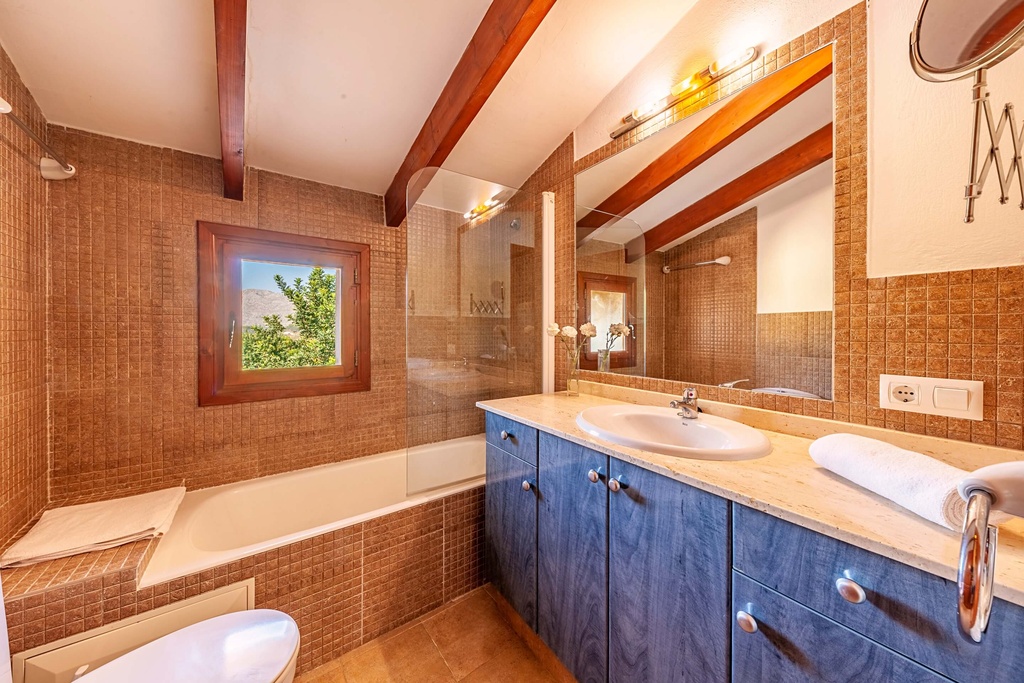 On the first floor is a double bedroom with a small private balcony, and a twin bedroom, which share a separate bathroom. The second twin bedroom has an en suite shower room. The remaining double bedroom with en suite shower dominates the entire second floor. All 4 bedrooms also share that same magnificent mountain view.