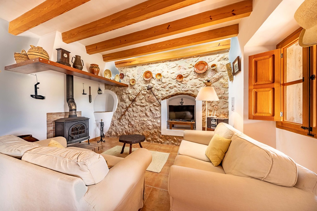Villa Prital is accessed by a picturesque private road that leads to this impressive stone country house with 4 bedrooms and 3 bathrooms, located on an extensive plot that combines rural charm with proximity to the most attractive places on the island. Situated between the historic city of Pollença and the crystalline coves of Cala San Vicente, the villa offers an unbeatable location. Surrounded by gardens, fruit trees, ponds and meadows, the natural environment invites relaxation. Despite its serene atmosphere, it is just a short walk from shops, restaurants, beaches and picturesque towns. The house preserves its original style with bright interiors, exposed beams, stone walls and arches. On the ground floor, there is a cosy living room, separate dining room, fully equipped kitchen and a double bedroom with private bathroom, ideal for those seeking privacy. On the upper floor, there is a double bedroom and two rooms with single beds that share a shower room and a bathroom. The views from the windows are spectacular. Outside, the large Roman-style swimming pool with sun loungers stands out, along with a fully equipped summer kitchen and a barbecue, perfect for outdoor dinners. The spacious gardens invite you to walk or simply relax. Villa Prital offers a private and well-connected refuge to explore the natural and cultural beauty of the area. Air conditioning is available from 14:00 to 16:00 and from 20:00 to 08:00, ensuring comfort during the hottest hours.