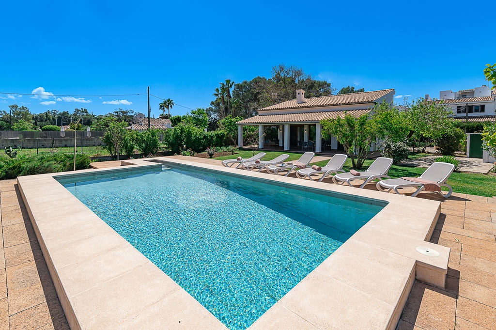 Villa Roqueta de Siller is an elegant and cosy villa located in the heart of Mallorca, ideal for a peaceful and memorable holiday. With capacity for 6 people, the property has three air-conditioned bedrooms, two bathrooms, spacious living areas and private gardens that guarantee total privacy. Distributed over two floors, the villa offers a modern design with large windows that fill the spaces with natural light. On the ground floor, there is a bright living-dining room with direct access to the terrace and pool, a fully equipped kitchen and a double bedroom with an en-suite bathroom. On the upper floor, there are two bedrooms with single beds, a family bathroom and a washing machine. The exterior offers Mediterranean gardens, shaded terraces, a brick barbecue and a private pool with sun loungers and umbrellas, perfect for relaxing in the sun. The air conditioning operates on a scheduled timetable (14:00–16:00 and 20:00–08:00), and the tourist tax is already included in the price. Villa Roqueta de Siller combines privacy, comfort and an excellent location to enjoy the best of Mallorca. Important information to note: In case of key loss or if keys are left inside the accommodation, a charge of €50 will be applied during office hours and €75 outside office hours. New keys must be collected by the guest at our office. On the check-out day, no rubbish should be left in the property. Guests must remove it; otherwise, a charge of €150 will be applied for waste management. Guest registration is required by law in Spain (Royal Decree 933/2021, of 26 October) and Greece (Law 4446/2016), so close to your arrival date, we will send an online check-in link for registration of all guests.