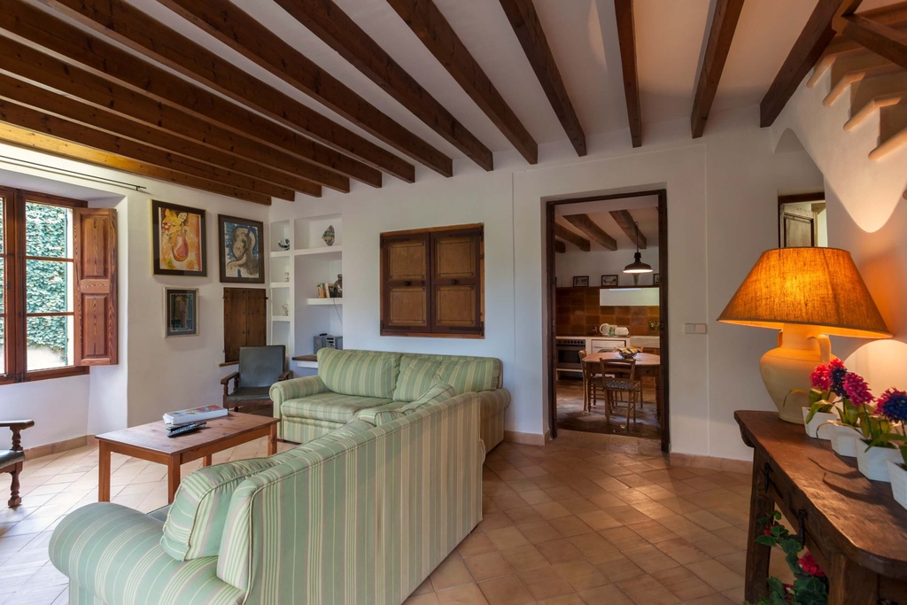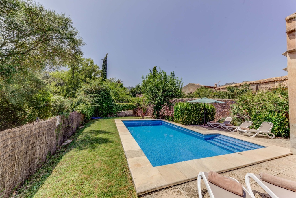 Villa Son March Petit is located in Pollensa, on the beautiful island of Mallorca. This charming independent holiday rental property, fully equipped with air conditioning, offers an ideal refuge for up to 5 people. It consists of 3 bedrooms, 3 bathrooms and a private pool, being the perfect place to enjoy peace and tranquillity in a picturesque setting. The villa, built in traditional Mallorcan style with local stone, is distributed over two floors. On the ground floor, the cosy living room, equipped with air conditioning, communicates with the fully equipped kitchen through a door. Access is also provided to a sheltered patio, ideal for enjoying outdoor meals. The living room has comfortable sofas, satellite television, DVD player and a dining area. From here, patio doors lead to the terrace next to the pool. The kitchen is fully equipped with modern amenities offering everything necessary for a comfortable stay. On the ground floor, there is a bedroom with a single bed, also with air conditioning, and a family bathroom with shower and W.C. From the living room, an internal staircase leads to the first floor, where two additional bedrooms are located. One of them has a double bed, en-suite bathroom with shower and W.C., while the other has twin beds and a family bathroom with shower and W.C. Outside, the villa has a private pool surrounded by a beautiful garden, ideal for relaxing in the available sun loungers. In addition, there is a dining area next to the pool and a barbecue, perfect for enjoying outdoor dinners in a private and well-maintained environment. Free air conditioning available from 14:00 to 16:00 and from 20:00 to 08:00, to ensure maximum comfort during your stay. Villa Son March Petit is the perfect destination for family or friends' holidays, combining traditional Mallorcan charm with modern amenities and a peaceful atmosphere, all in a natural setting of great beauty. 29107815
