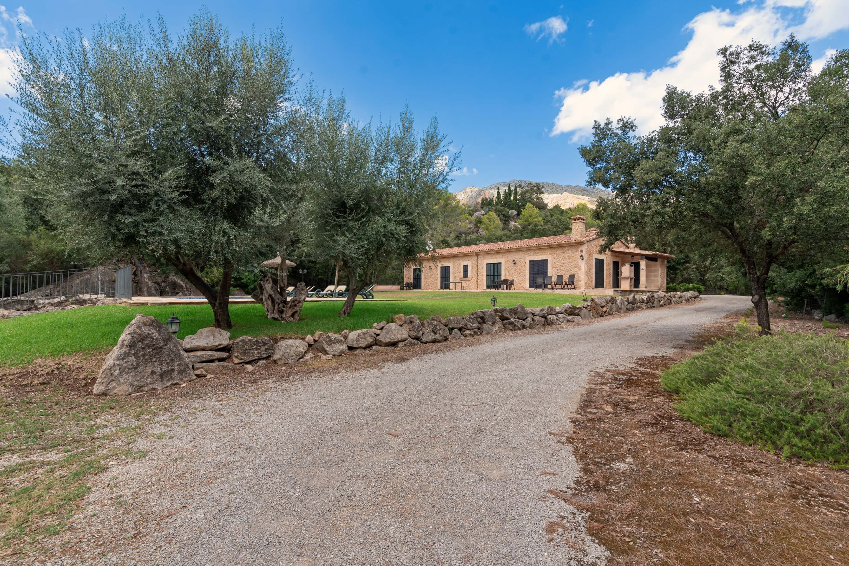 Villa Son March, located just 7 kilometres from the centre of Pollensa, where you will find shops, bars, restaurants and supermarkets and just 12.5 kilometres from the beach, which will allow you to enjoy the beautiful coasts of Mallorca. This modern villa is the perfect destination if you are looking for a quiet and comfortable place for your holidays. With a capacity for 8 people, it has 4 bedrooms and 3 bathrooms. Of these rooms, one is a double room with a private bathroom, while the other three are double rooms, one of which also has a private bathroom, which guarantees comfort and privacy for all guests. The private bathrooms in the master bedroom and in one of the twin rooms offer total privacy and comfort. An additional bathroom with a modern Italian shower is available for other guests. The design of the villa is rustic with wooden beam ceilings, which gives it a traditional and warm touch. Just outside the property, there is a road that leads directly to the old town of Pollensa, which can be reached in just 15 minutes by car. From the villa's garden, panoramic views of trees and mountains can be enjoyed, making it a perfect refuge to relax. The villa's doors open to a spacious furnished terrace that leads to a beautiful garden and a private pool, surrounded by rocky outcrops that border the extensive lawn. This is the ideal place to enjoy moments of rest and outdoor leisure. Inside the villa, the living room offers a cosy atmosphere, equipped with two sofas, satellite TV and DVD player, making it a perfect place to relax after a day exploring the island. The kitchen is fully equipped with modern appliances so you can easily prepare your meals. In addition, the villa has a laundry room with a washing machine for greater convenience during your stay. Outside, the villa has a terrace with a barbecue, ideal for enjoying outdoor dinners in the garden. The private pool is surrounded by a spacious solarium terrace with tables, chairs, sun loungers and umbrellas, making it the ideal place to relax in the sun. Come and enjoy everything Villa Son March has to offer!