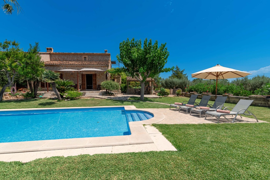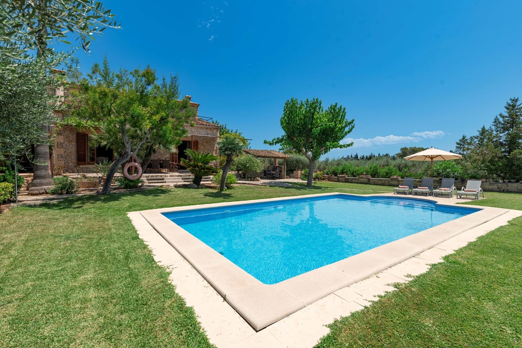 The gardens of the villa are simply spectacular, with a well-maintained landscape surrounding the generously sized pool. Around the pool, there is a spacious terrace with sun loungers, perfect for relaxing while contemplating the beauty of the natural surroundings and mountain views. The sunsets from the villa are simply impressive, creating an ideal atmosphere to enjoy a glass of wine at the end of the day. The villa offers a private, peaceful, and exclusive experience, perfect for those seeking to escape the hustle and bustle of daily life, but with easy access to some of the best cities and beaches on the island. Whether to relax in the garden, enjoy a swim in the pool, or explore the beauty of the island, Villa Can Toni is the perfect place for unforgettable holidays.