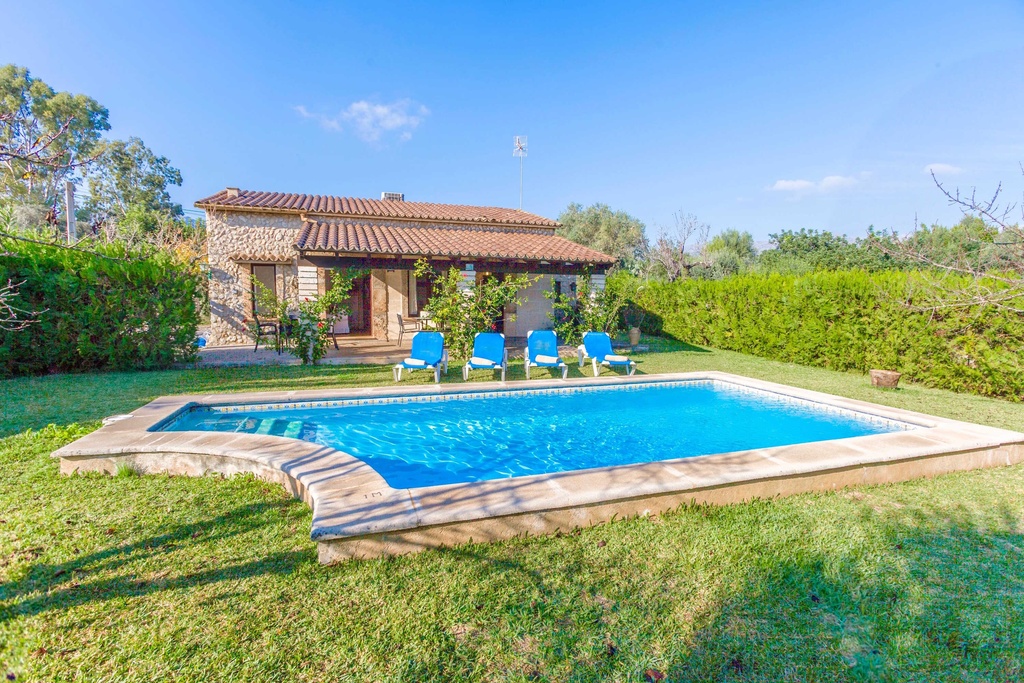 Villa Totxa is a charming and cosy two-bedroom holiday home with a private swimming pool, ideally located in the countryside, on the outskirts of Pollensa. With a privileged location offering peace and tranquillity, this villa perfectly combines Mallorcan rustic charm with modern facilities, creating the perfect atmosphere for a relaxing holiday. Its spacious gardens, which provide total privacy, along with air conditioning and contemporary amenities, make this stone villa the ideal option for a couple or a small family wishing to enjoy the serenity of the countryside without being far from urban comforts, as it is just a short drive from restaurants, shops, and beautiful sandy beaches. Inside, the villa is distributed on a single floor, offering easy and comfortable access to all rooms. The living room, with air conditioning, is tastefully decorated and has direct access to the outdoor patio with the pool. This cosy space is perfect for relaxing after a day of exploration or enjoying a pleasant evening with family. The independent kitchen is fully equipped, allowing you to prepare everything from simple dishes to more elaborate meals with total comfort. The villa has two bedrooms: a double bedroom, which has an en-suite bathroom with a shower, and a twin bedroom, ideal for children or adults who prefer separate beds. The twin bedroom is conveniently close to a family bathroom, which is equipped with a bathtub, providing additional comfort for guests. Outside, Villa Totxa's gardens offer an extensive area to relax, sunbathe, or enjoy outdoor activities. The private pool, surrounded by a natural environment, guarantees a calm and private swimming experience. Comfortable sun loungers and shaded areas are arranged so that you can enjoy the outdoors at any time of the day, whether you are looking for sun or shade. Additionally, the villa has a spacious terrace equipped with a dining table, perfect for outdoor dinners, and a built-in barbecue, ideal for enjoying cooking in the fresh air during warm summer nights. For added convenience, the villa offers private parking within the premises, ensuring that there is always a place available for your car. In summary, Villa Totxa is the perfect refuge for those seeking to combine the charm of Mallorcan tradition with modern comforts, all in a quiet and private setting, but a short drive from Pollensa's main attractions. Important information to keep in mind: In the event of key loss or if keys are left inside the accommodation, a charge of 50 € will be applied during office hours and 75 € outside of office hours. New keys must be collected by the guest at our office. On the check-out day, no rubbish should be left on the property. Guests must remove it; otherwise, a charge of 150 € will be applied for waste management. The guest registration is required by law in Spain (Royal Decree 933/2021, of 26 October) and Greece (Law 4446/2016), therefore close to your arrival date, we will send an online check-in link for the registration of all guests.