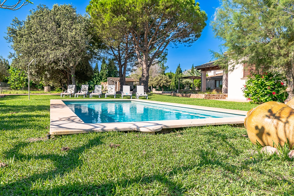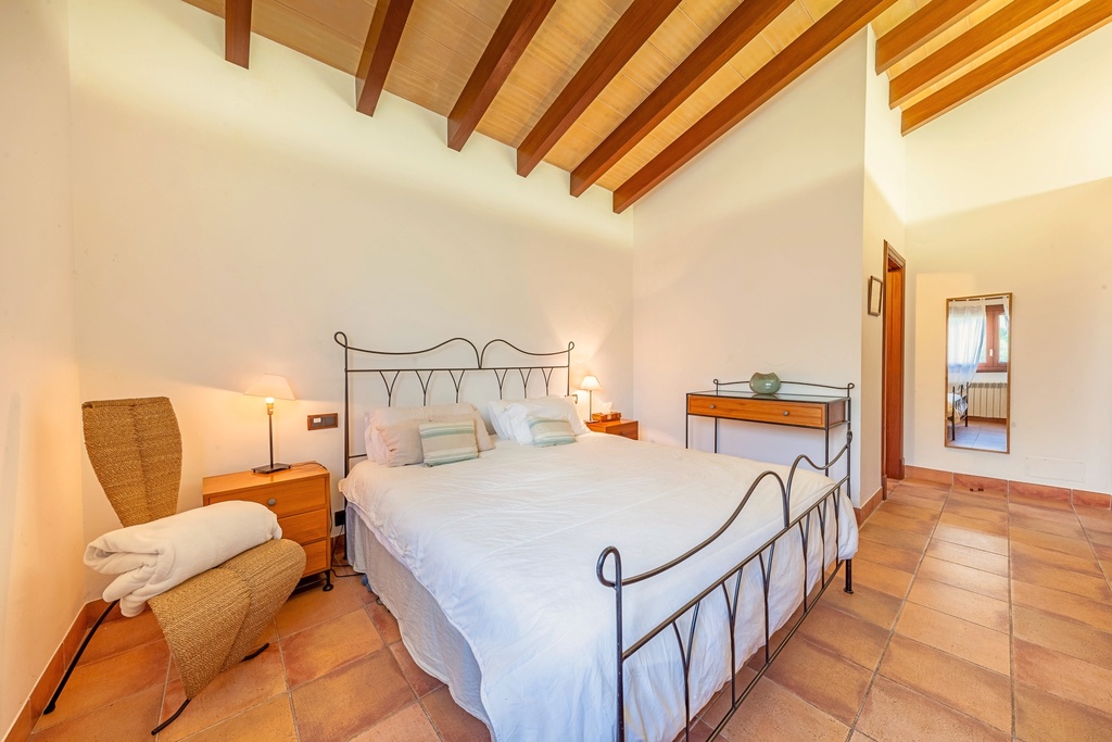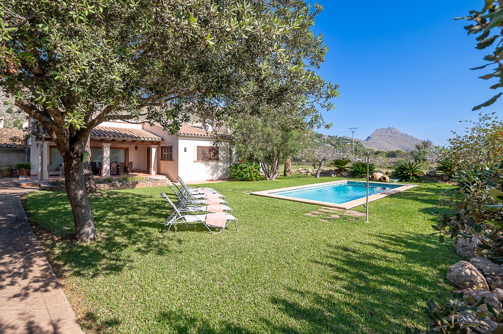 Villa Marc is a traditional Mallorcan villa located between Pollensa and Puerto Pollensa, in a peaceful and private setting, yet close to the main beaches and services. Its location is perfect for those seeking the tranquility of the countryside without being too far from the island's most popular tourist and natural areas.The villa features a large covered terrace that leads to an elegant living room with comfortable sofas and high ceilings, creating a sense of spaciousness and freshness. The fully equipped kitchen is ideal for those who want to enjoy homemade meals, while the bright dining area has glass doors that open directly to the terrace and the pool, allowing you to enjoy the outdoors at all times.