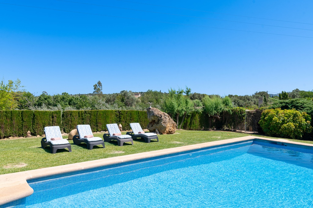 Villa Roma Welcome to your perfect holiday retreat! This charming villa offers everything you need for an unforgettable stay. The villa has a large private swimming pool surrounded by lawn, ideal for cooling off during hot summer days. It also has a spacious garden area equipped for children, where they can enjoy games such as ping-pong, badminton, or pétanque. Outside, a covered terrace, from where you can watch the little ones swimming in the pool, invites you to enjoy unforgettable dinners with family and friends, prepared on the barbecue for your best barbecues. Inside, everything revolves around comfort. You will find three comfortable bedrooms: two with double beds, one of them with a private bathroom and another with two single beds. A spacious living-dining room equipped with comfortable sofas, a fully equipped kitchen with dining area, and an additional bathroom with a bathtub offer all the necessary comfort. The villa is located on a quiet street in the neighbourhood, accessible only to the few local residents, which guarantees privacy and tranquillity. Just two minutes by car from the iconic town of Pollensa, you can walk through historic cobbled streets, visit its famous art galleries, and enjoy local gastronomy in the town square. Ten minutes by car are the beautiful beaches of Puerto Pollensa and Alcudia, where you can refresh yourself in the crystal-clear waters or simply take a walk at sunset along the long seafront promenade and enjoy the sea views. Air conditioning is available from 14:00 to 16:00 and from 20:00 to 08:00 .
