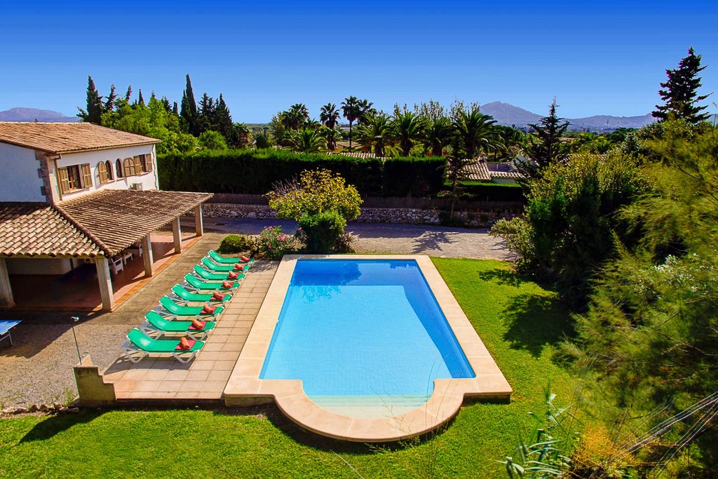A private road leads to the villa, with the swimming pool on the left. This Spanish villa with 2 bedrooms is situated between the Tramuntana mountains and the seafront. With a large private swimming pool and a pleasant garden, there is plenty of space to sunbathe and enjoy the surroundings. Villa Virrey is a short distance from both the old town of Pollensa and the coastal resort of Puerto Pollensa. The traditional-style living room runs the entire length of the villa and has patio doors on 2 sides that open directly onto the terrace next to the pool. The dining area is located next to the kitchen entrance, which has a smaller breakfast table and a door leading to the barbecue and outdoor dining area. On the other side of the living room, there is a living room with an ornamental fireplace and traditional Mallorcan decor, with a guest toilet next to the stairs completing the ground floor. The 2 bedrooms are located on the first floor. Each bedroom features traditional Spanish furniture and built-in wardrobes, with views of the surrounding countryside. The large private swimming pool is undoubtedly one of the highlights of Villa Virrey. The surrounding terrace has plenty of space for sunbathing. Or, if you prefer the comfort of shade, there is also a seating area on the perimeter covered terrace. The brick barbecue and outdoor dining area are located beside the house. Important information to take into account: In the event of key loss or if keys are left inside the accommodation, a charge of €50 will be applied during office hours and €75 outside of office hours. New keys must be collected by the guest at our office. On the check-out day, no rubbish should be left on the property. Guests must remove it; otherwise, a charge of 150 € will be applied for waste management. The guest registration is required by law in Spain (Royal Decree 933/2021, of 26 October) and Greece (Law 4446/2016), therefore close to your arrival date, we will send an online check-in link for the registration of all guests.