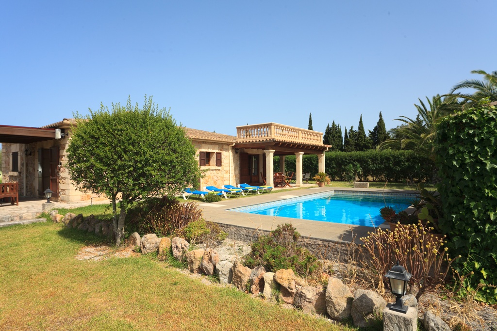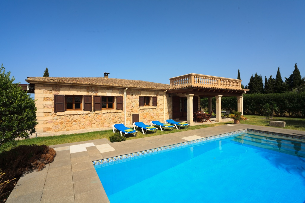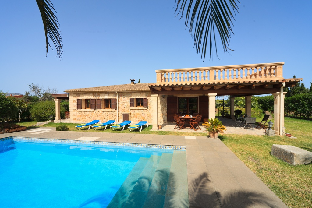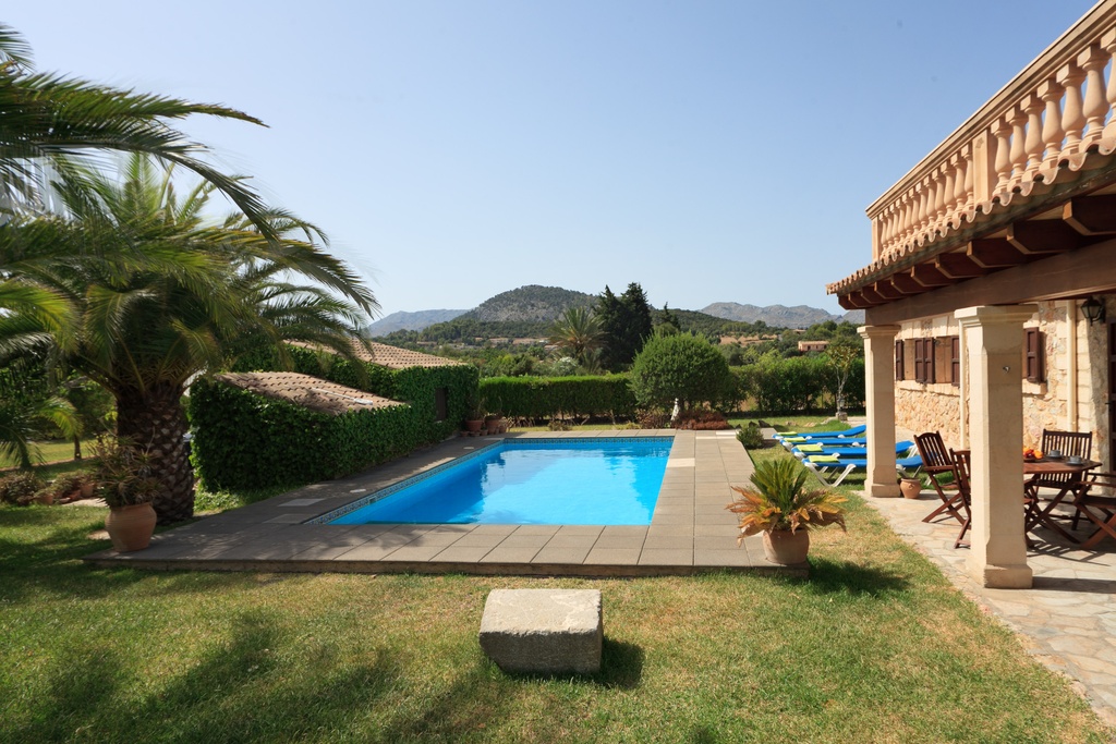 Villa Xinito is a sweet, charming property, full of character and atmosphere, located in a quiet position near Pollensa. With capacity for 4 people in 2 air-conditioned rooms, Villa Xinito is the perfect option for a couple or a small family. Thanks to its spacious gardens with lawn, private pool and perfect location, Villa Xinito will not disappoint. Inside, the villa is situated on a single floor. From the open living/dining room, with exposed beams, doors open to the impressive covered terrace, which provides access to the pool area, which in turn leads to a spacious lawn. A step forward leads to a double bedroom with a complete en-suite bathroom, another double bedroom and a complete bathroom for the whole family. The spacious gardens (surprisingly large for a two-bedroom property) are planted with many fig trees, and the landscape beyond gives the villa a seductively calm atmosphere. Additionally, a roof terrace (accessed via a spiral staircase) offers a new opportunity to enjoy splendid views of the countryside and surroundings. Sun loungers and outdoor furniture are available to guests. Free air conditioning from 2:00 PM to 4:00 PM and from 8:00 PM to 8:00 AM. The tourist tax is included in the price. Important information to take into account: In the event of key loss or if keys are left inside the accommodation, a charge of €50 will be applied during office hours and €75 outside of office hours. New keys must be collected by the guest at our office. On the check-out day, no rubbish should be left on the property. Guests must remove it; otherwise, a charge of 150 € will be applied for waste management. The guest registration is required by law in Spain (Royal Decree 933/2021, of 26 October) and Greece (Law 4446/2016), therefore close to your arrival date, we will send an online check-in link for the registration of all guests. Welcome to Villa Xinito.