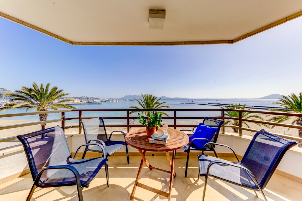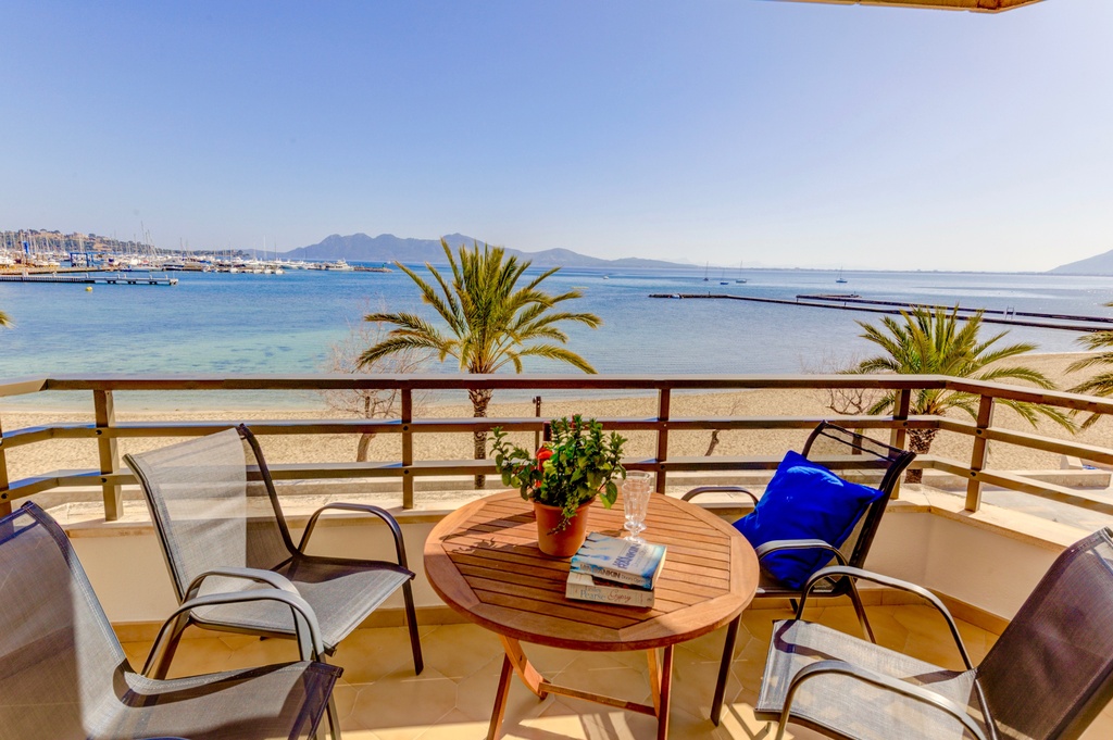 Beachfront Apartment Simar is a “super-central” 4-bedroomed apartment perfectly located on the well known beachfront promenade “Passeig Saralegui” of Puerto Pollensa. Sleeping up to 8 guests in 4 air-conditioned bedrooms and provided with a stunning sea-facing terrace, this apartment occupies the second floor and offers breathtaking views. A wide array of restaurants, bars, shops, beaches is within easy walking distance therefore a car is not required.