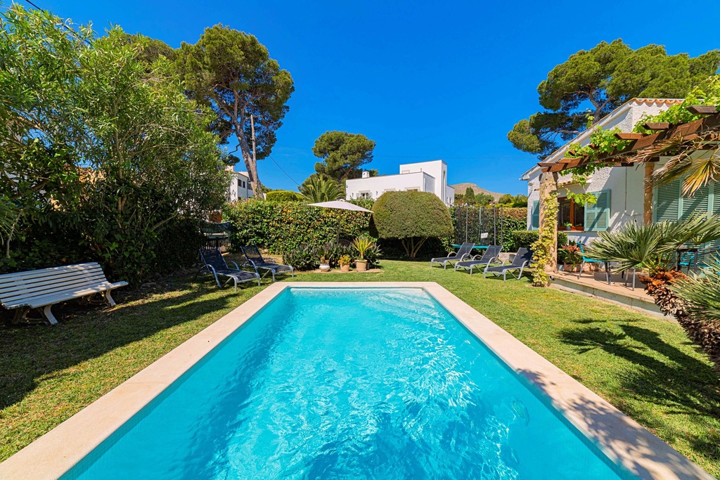 Can Mir Ruth is a truly unique gem in the heart of Puerto Pollensa: detached, charming, with a newly added private pool, surrounded by extensive private grounds, yet located just a couple of steps away from the sandy beach. With 3 bedrooms, 2 bathrooms, large common areas, this fully air-conditioned villa can sleep up to 5 guests in totally renovated interiors, mixing the charm of the traditional Mallorcan villas with the most modern comforts. With a wide array of shops, bars, restaurants and attractions in close proximity, a car will not be essential!