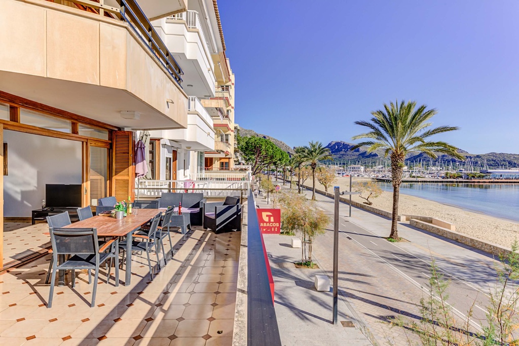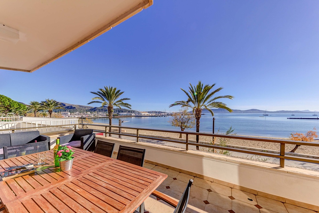 Beachfront Apartment Saralegui: location, location, location! No words can describe better the unique feature of this comfortable apartment. Located right on the sandy beach of Puerto Pollensa, with a wide array of shops and restaurants virtually at your doorstep, this apartment is set to impress for its light and airy feeling as well as for its breathtaking views. Sleeping up to 6 guests in 3 air-conditioned bedrooms, and measuring more than 160sqm plus a sea-facing terrace, this apartment will not disappoint.