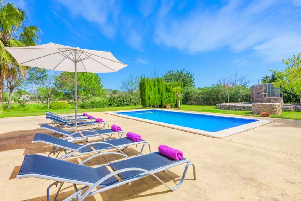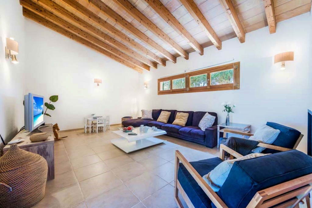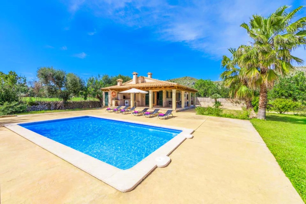 Villa Marilen Petit is an utterly delightful detached villa, set within extremely spacious and gorgeous grounds offering a little bit of everything from seclusion, serenity. Yet, within it is easy driving distance of the popular Puerto Pollensa, the historic old town of Pollensa and the charming old town of Alcudia. It is built over one floor and boasting such a fantastic setting. Recently constructed, Villa Marilen Petit is light and airy, with delightful wood beamed ceilings and wooden shutters. Outside there is a fabulous swimming pool with large steps allowing easy access for the young and the elderly alike! Villa Marilen Petit is sure to exceed the expectations of anyone wishing to holiday in this exclusive north east coastline of Mallorca. To access the villa there is a path with 2 steps up at the end of the path. Paths from the villa to the pool are 2 meters wide, the grounds are flat and the pool has roman steps to enter. The covered terrace has one step down to the uncovered terrace which goes up to the pool side. The pool has a small step round it. The covered terrace has a step down to the open terrace that goes up to the pool side. The pool has a small step around it. The living area is modern furnished, with a beamed ceiling as well as comfortable sofas and a flat screen TV, DVD player, sat TV few English channels Kitchen has oven, hob, microwave, dishwasher, fridge freezer, area with dining table and chairs, doors to terrace gardens In the ground floor there are three bedrooms, first bedroom there is double bed, ensuite shower room, air conditioning cold heat. In the second bedroom there are two twin beds, air conditioning cold heat. And in the third bedroom there is single bed, bunk beds, air conditioning cold heat. There is a shower room with shower, toilet, basin Outdoors there are shower Room with shower, toilet and basin, off road parking, covered terrace, open terrace, alfresco dining facilities, sun loungers, parasol, lawn, garden furniture, brick built BBQ, enclosed garden, table tennis, outdoor private pool. Villa Marilen Petit can sleep up to 6 people. (FREE Travel Crib and Highchair available on request.) Free air conditioning from 14:00pm to 16:00pm and from 20:00pm to 08:00am.