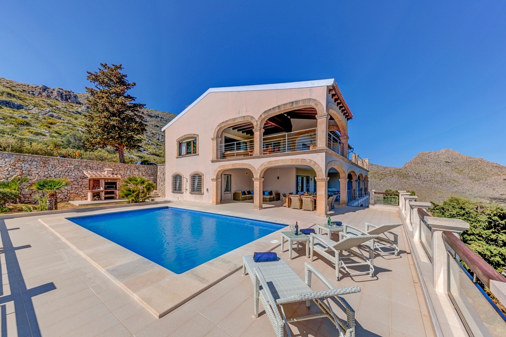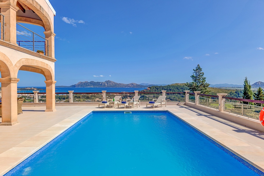Villa Lux, one of the most exclusive properties in Mallorca, proudly stands at the top of El Vilar hill, above Puerto Pollensa. Offering the most impressive views over the sea and the Tramuntana mountains, Villa Lux is the perfect choice for truly luxurious holidays in a completely private and panoramic location. With 4 spacious bedrooms, large windows, spacious terraces and a large private pool, this villa has been designed with comfort and class in mind.