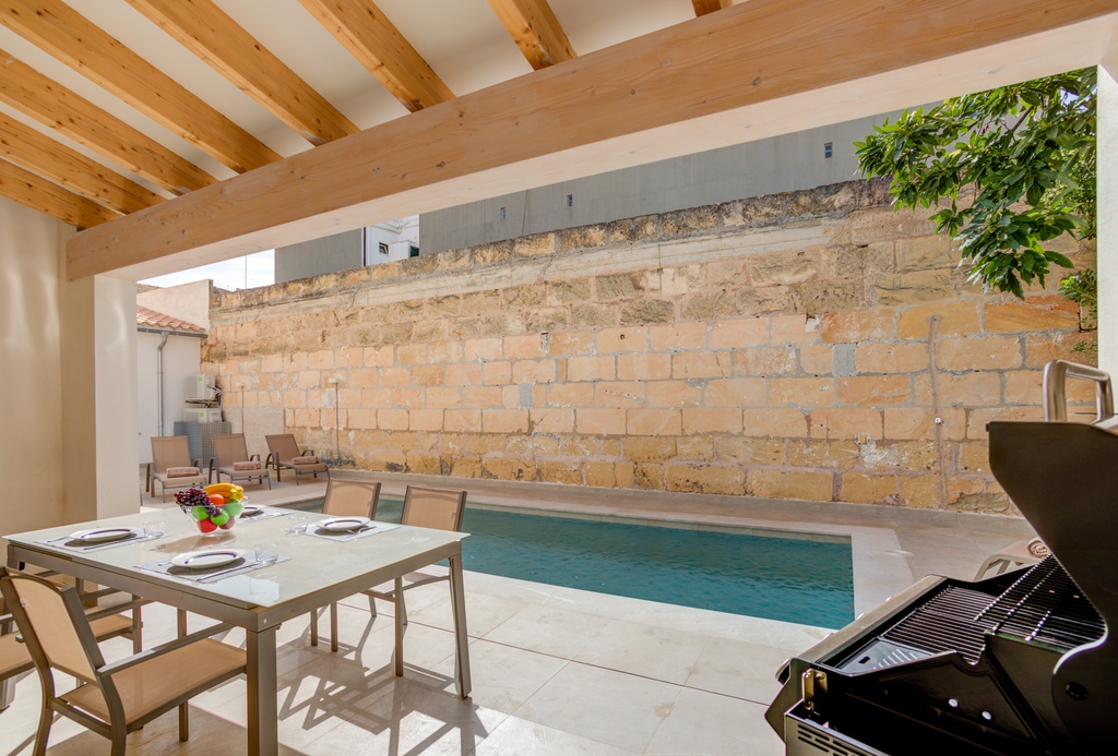 Villa Ca la Tia Joanaina is an exciting, brand new property uniquely located just a couple of steps away from the beach and shops of Puerto Pollensa. With 3 bedrooms, 2 bathrooms, air conditioning ( For the comfort of our guests, air-conditioning is available and included in the price between 2pm-4pm and 8pm-8am.) and a large private pool, this villa is a true gem in the most sought after location. A car is not required and you will have all the necessary facilities virtually at your doorstep!