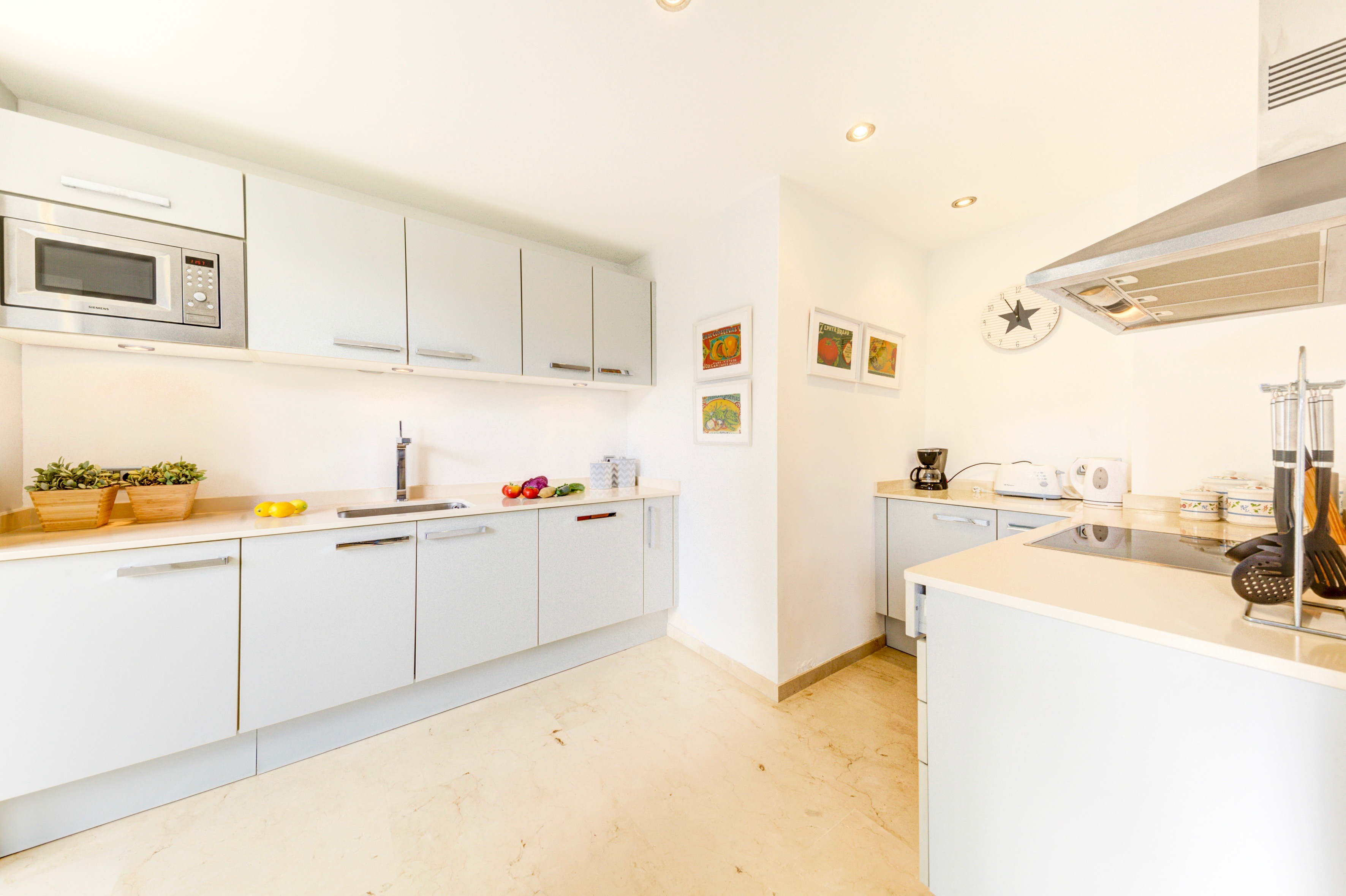 Outside, a lovely garden with dining facilities complement the setting. The inviting shared pool is an added bonus, very difficult to find in other properties so close to the sea! The swimming pool is shared only between the 6 apartments of the building, therefore there will be plenty of space for all the guests to enjoy.